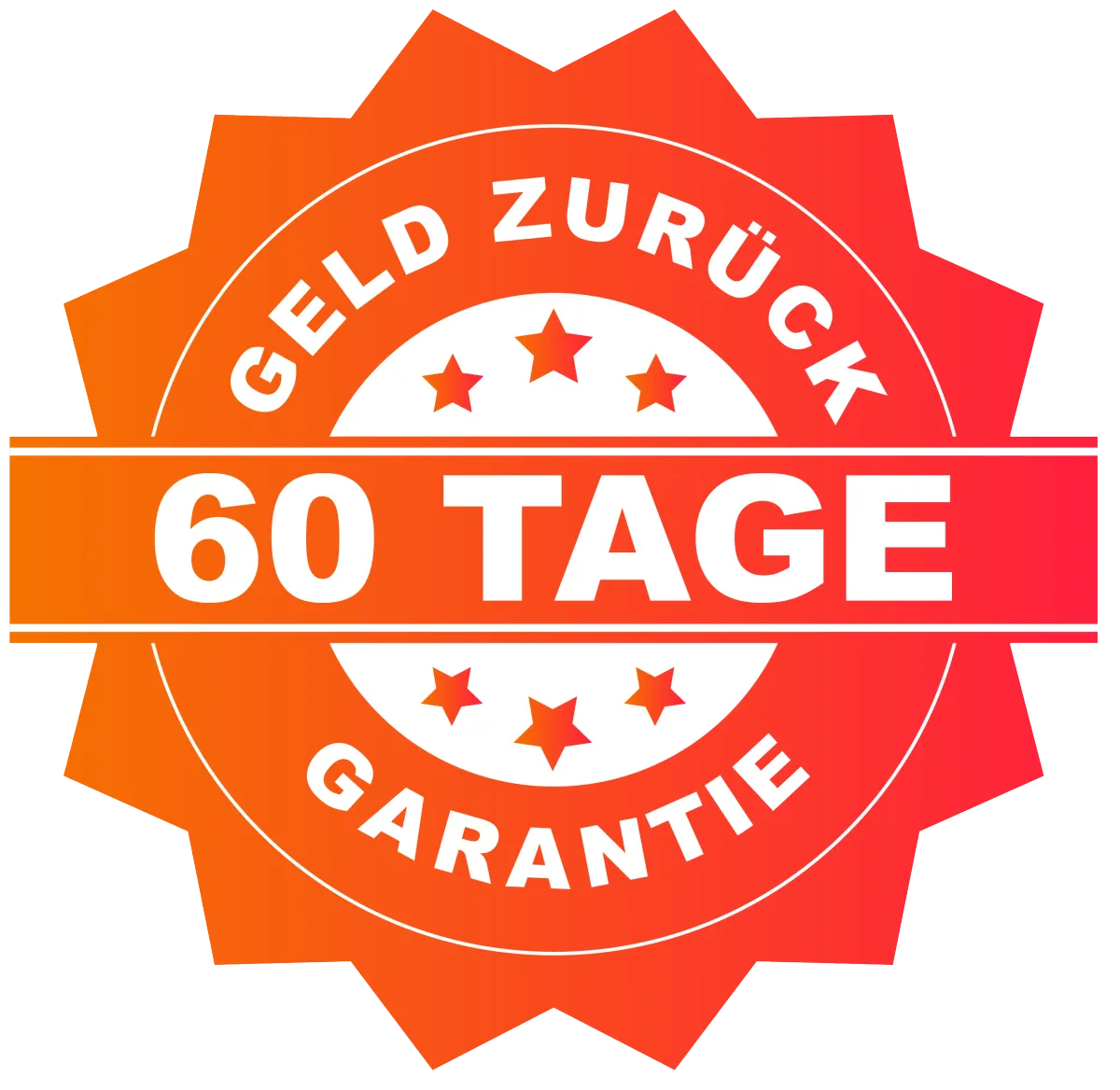 Ihre heutige Bestellung ist durch unsere eiserne 60-Tage 100% Geld-zurück-Garantie geschützt.